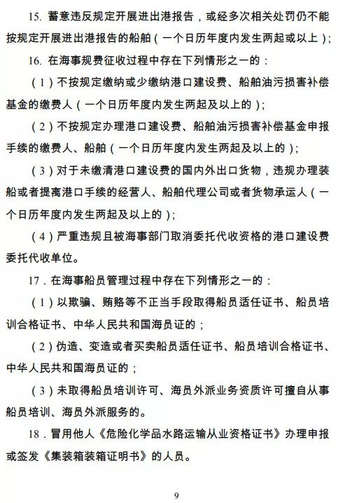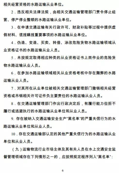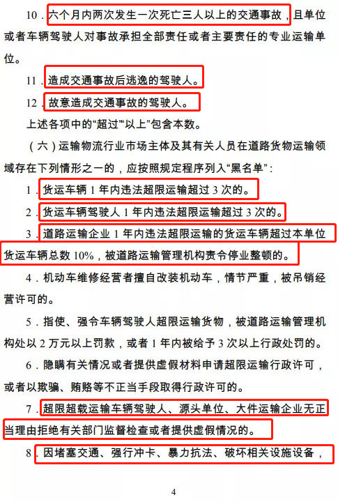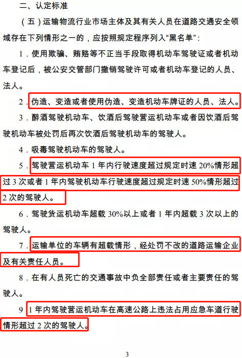 根据《实施意见》的要求,政府主管部门及行业监管部门依据在事前、事中监管环 节获取并认定的失信记录,依法依规建立健全失信联合惩戒对象名 单管理制度。以相关司法裁判、行政处罚、行政强制等处理结果为依据,按程序将涉及性质恶劣、情节严重、社会危害较大的违法失信行为的运输物流行业市场主体及其有关人员(以下简称失信主体),列入“黑名单”,并向社会公布,实施信用约束、联合惩戒。对存在失信行为但严重程度尚未达到“黑名单”认定标准的失信主体, 相关部门可根据工作需要,将其列入诚信状况重点关注对象名单,实施严格监管措施。运输物流行业市场主体是指从事运输、仓储、装卸、配 送、代理、包装、流通加工、快递、信息服务等物流相关业务的企业及其分支机构和个体工商户;有关人员是指负有直接责任的法定 代表人、企业负责人、实际控制人及从业人员。认定为运输物流行业“黑名单”的失信主体相关信息应纳入全国信用信息共享平台,依据《关于对运输物流行业严重违法失信市场主体及其有关人员实施联合惩戒的合作备忘录》(以下简称 《备忘录》)实施联合惩戒。据了解:纳入运输“黑名单”的行为包括,超载、超速、酒驾、毒驾、占用高速应急车道以及违规取得驾驶证等等方面,且相关指标极为严格(详情见文中说明)惩戒内容包括:经营审批限制、道路通行限制、招投标限制等各个方面。对此,危险废物运输业应该引起足够重视,否则将对自身从事危废运输造成重要影响,甚至无法从事危废运输。那么,哪些行为将被纳入“黑名单”?