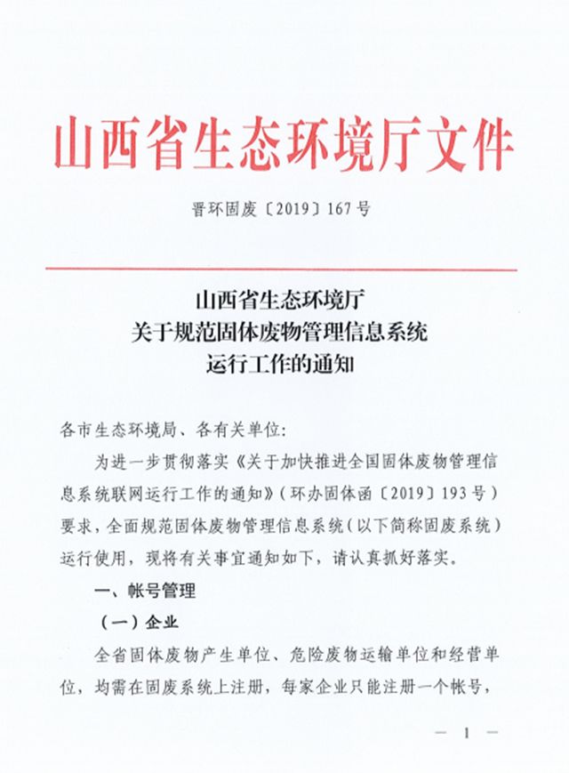 导读:近日,山西省发布《关于规范固体废物管理信息系统运行工作的通知》,对账号管理、固体废物申报登记、危险废物转移等作出了要求。同时,要求加强组织领导、提高监管能力、强化调度检查。<imgsrc="/upfile/...