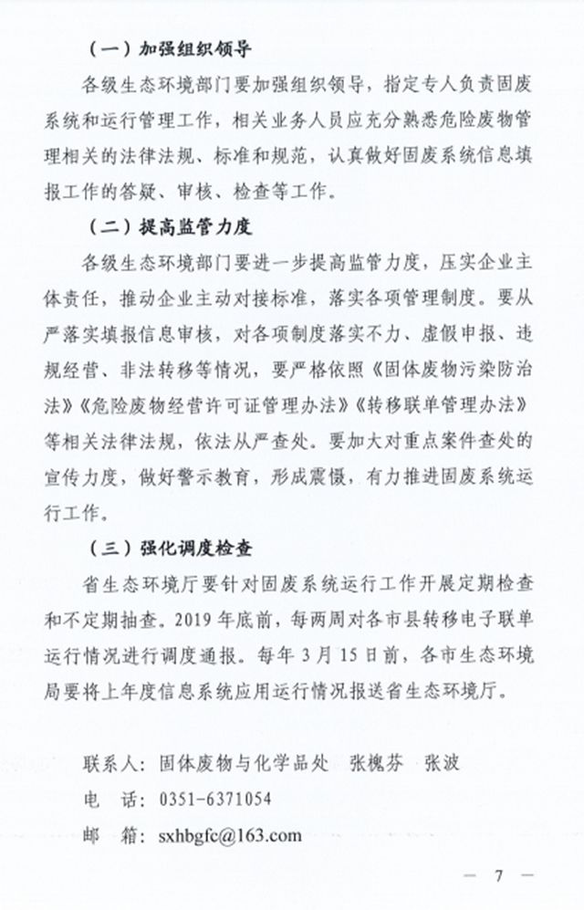 近日,山西省发布《关于规范固体废物管理信息系统运行工作的通知》,对账号管理、固体废物申报登记、危险废物转移等作出了要求。同时,要求加强组织领导、提高监管能力、强化调度检查。