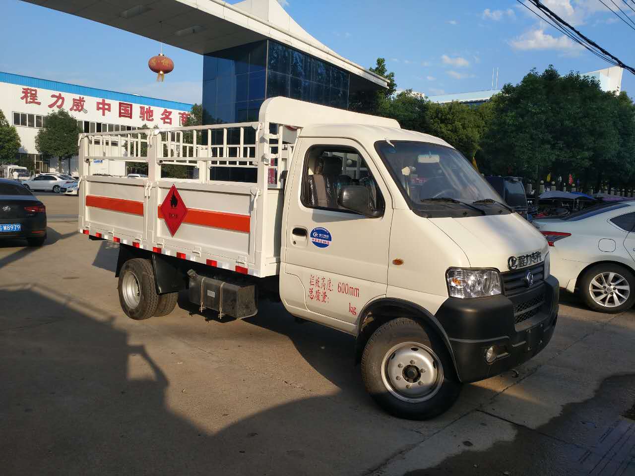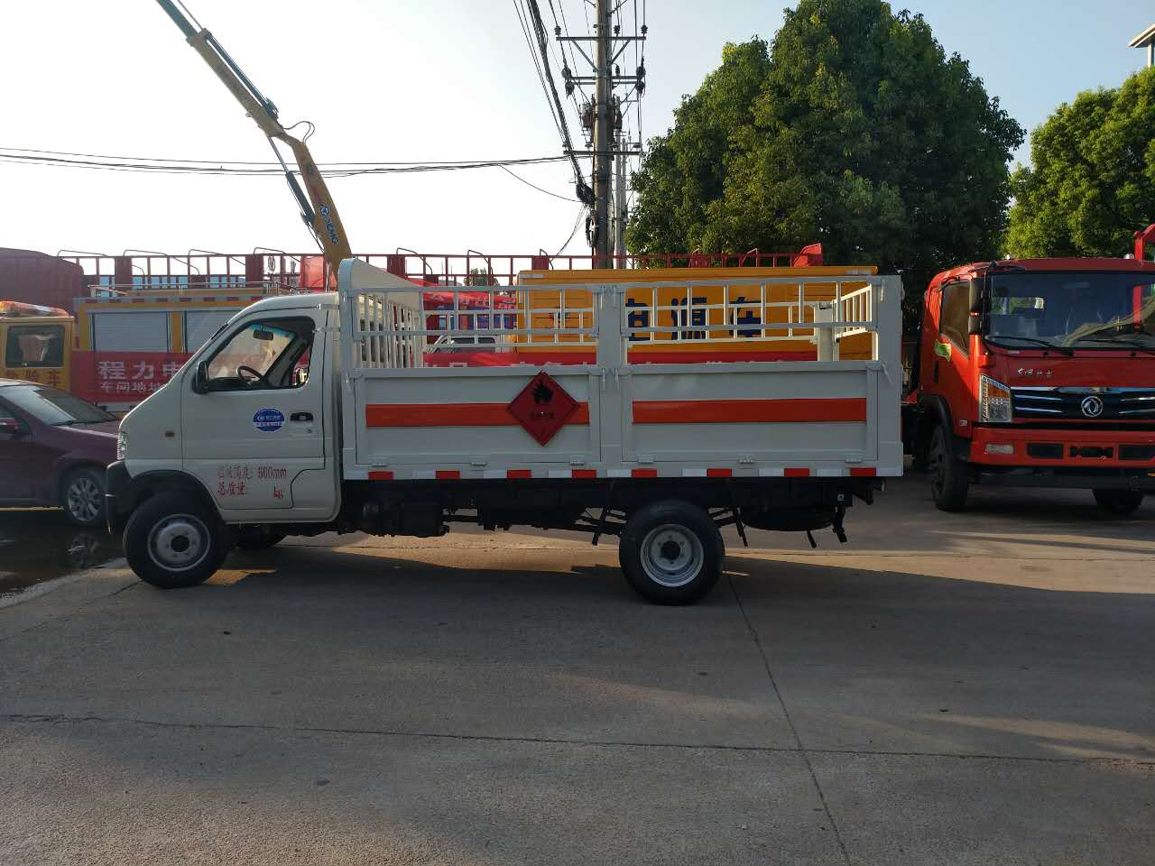 东风俊风气瓶运输车上装配置:货厢尺寸为3300×1750×1750(mm)、额定载质量1490kg、厢体外饰冷板、内饰铝板、中间为防阻燃泡沫、厢内安装卧环、烟雾报警器、防盗报警器、右边开侧门、后双开门、带拖地静电带,其它均按厂标组织生产。
